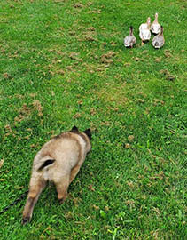 Nyx earned her PT on ducks in Sept '24, and a few days later earned her first scent work titles (SCN & SIN). She's on her way! |