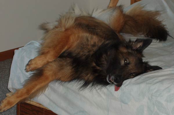 | Sue took over handling and training obedience and tracking, and Sila earned her TD on her mama's birthday (5/3/09) and finished her CDX on 7/24/09, and officially retired from competition. She spent her last 4 years stealing Jim's spot on the couch in a split second, making us laugh, and most importantly getting lots of petting and giving lots of kisses. She was healthy to the very end and left us quickly but without pain. We are forever enriched for having this Life Spirit in our lives, and will have her in our hearts forever. | ![]() |
