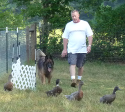 While SAR work took up much of his time, Bogey showed very nice herding work on sheep and ducks. He earned his PT in November 2010 and dabbled in tracking as well. |